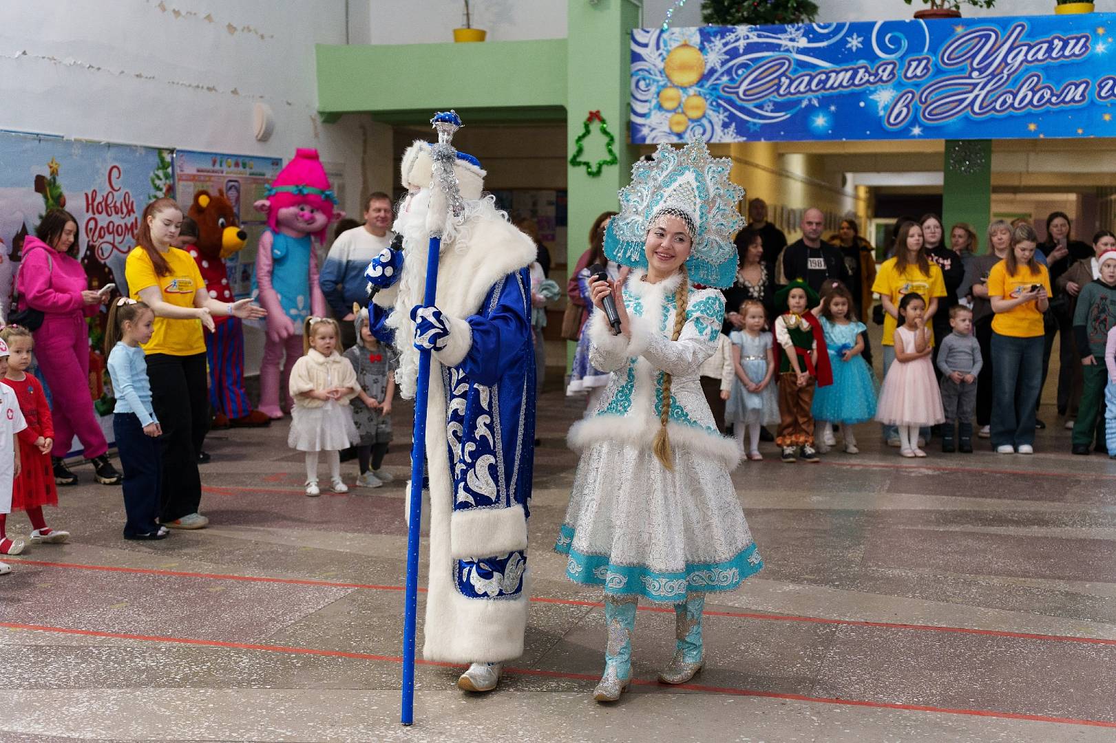 Гостей встречали ростовые куклы и Дед Мороз, а сотрудники детского сада № 70 подготовили для ребят новогоднее представление. Кроме того, с творческими номерами на сцене выступили учащиеся детской музыкальной школы № 7 им. А.А. Бабаджаняна и артисты творческого коллектива «Рассветы Камчатки». Помощь в организации праздника оказал Дом культуры СРВ и местное отделение партии «Единая Россия».