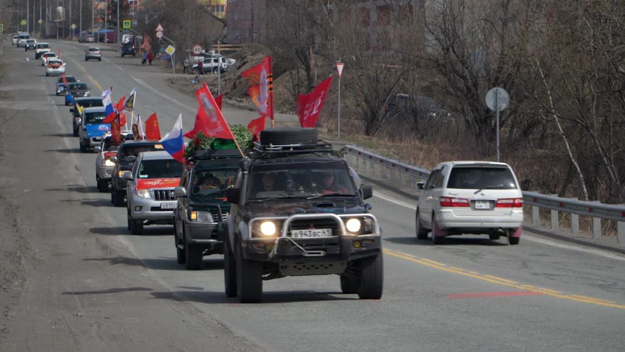 Традиционный автопробег «Спасибо деду за Победу» собрал жителей Елизовского района в преддверии празднования Дня Победы. В мероприятии приняли участие более 30 автомобилей, украшенных флагами России, СССР, военными знамёнами, фотографиями ветеранов Великой Отечественной войны и героев, принимающих участие в специальной военной операции.