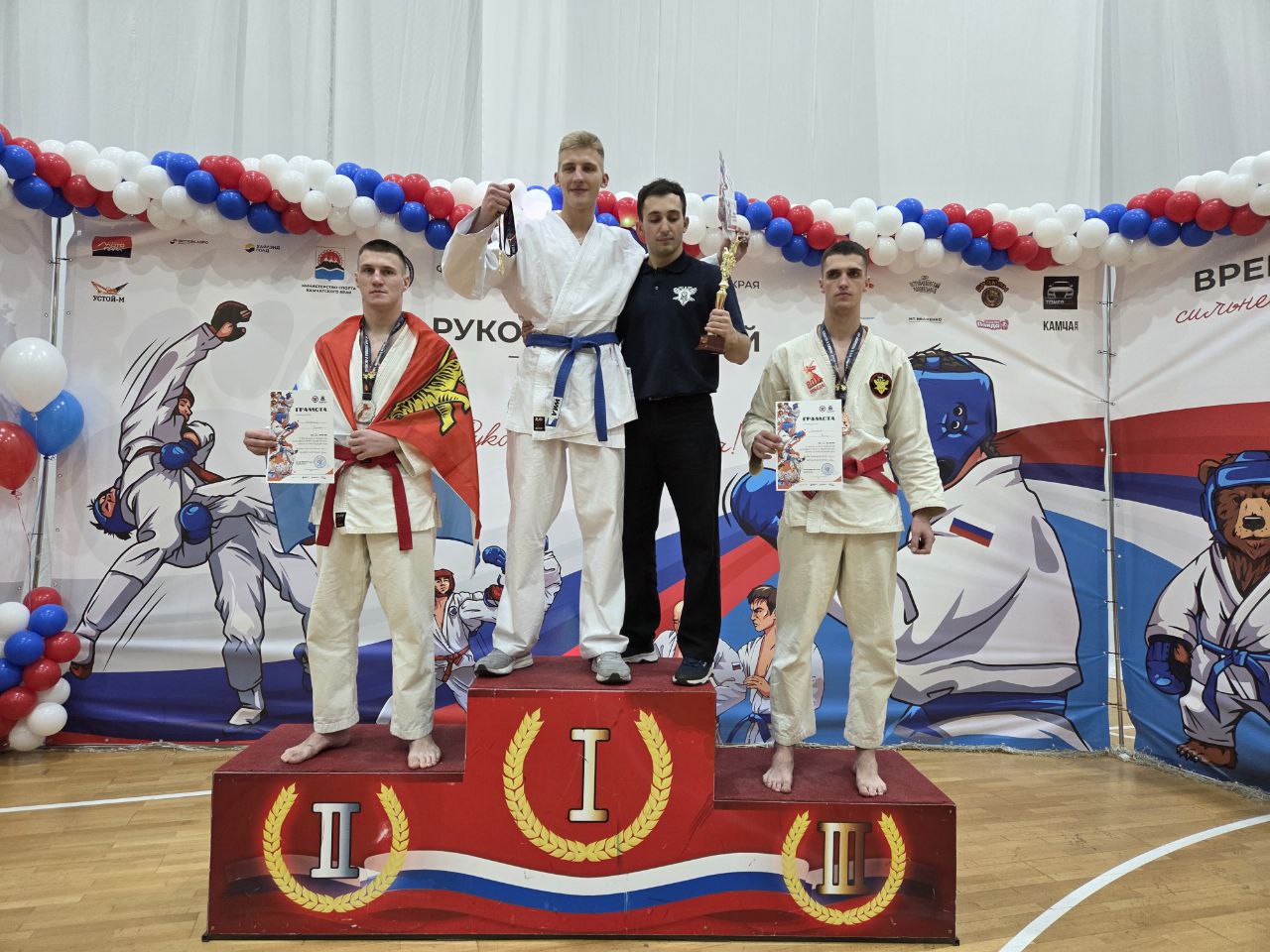 Награды получили представитель Камчатского края Никита Городинский, а также борцы из Сахалинской области Фариддун Ёкубов, Расул Абдылдаев и Эрбол Камилов. Спортсмены продемонстрировали высокий уровень мастерства и лучшую технику рукопашного боя в своих весовых категориях.