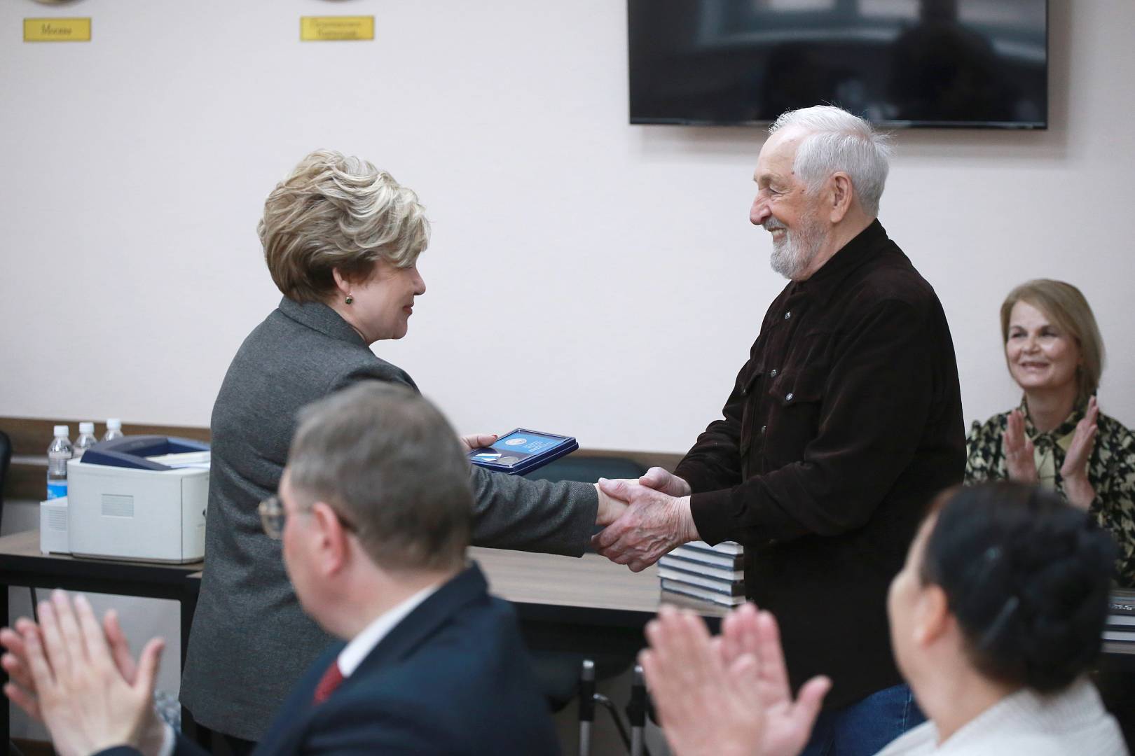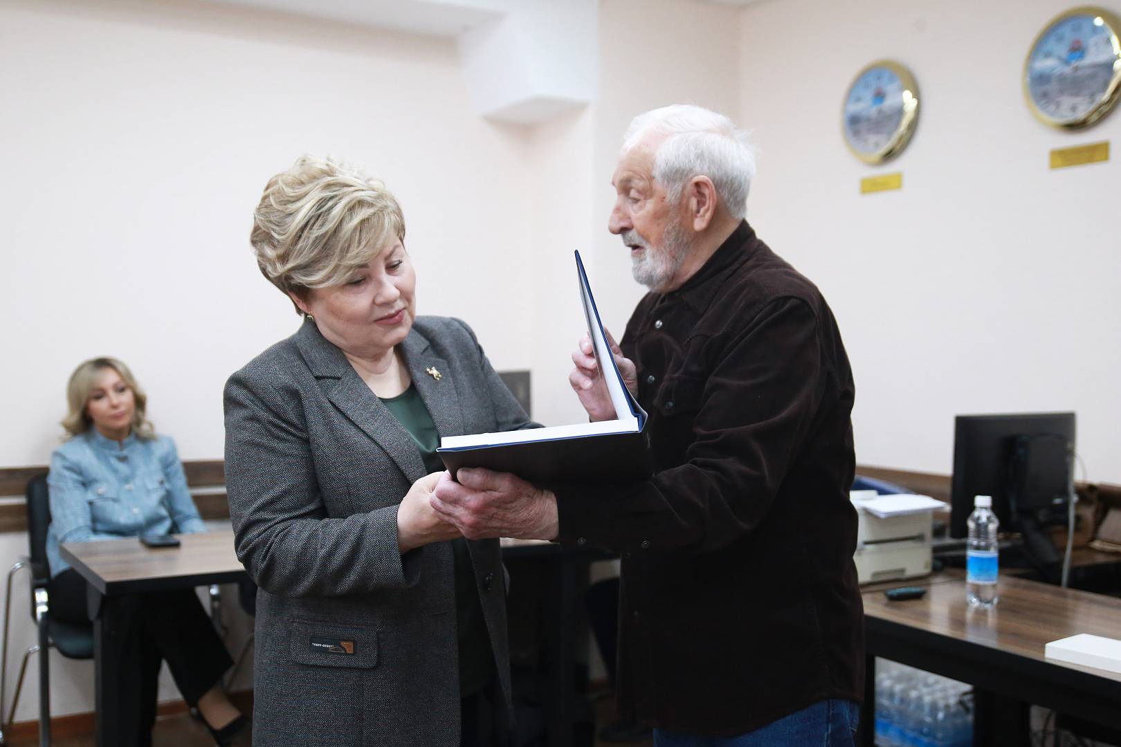 Она вручила Виталию Шохину памятную медаль, выпущенную к 170-летию героической обороны Петропавловского порта от нападения англо-французской эскадры.