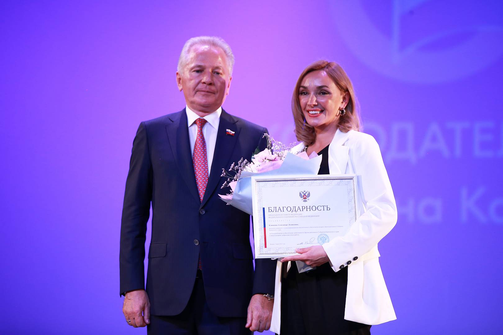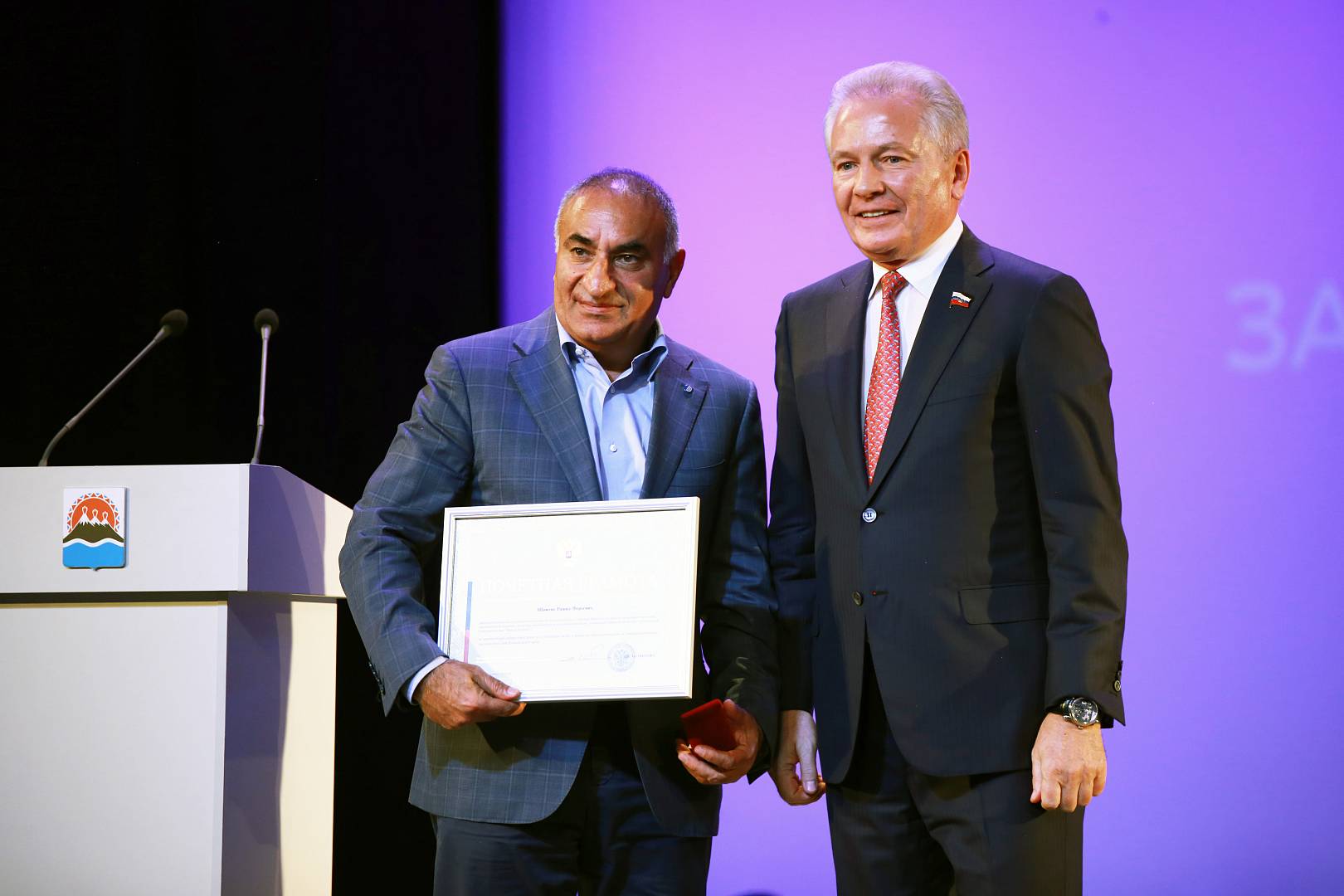 Почетной грамотой с нагрудным знаком Совета Федерации был награжден Рашид Шамоян, заместитель председателя комитета по бюджетной, налоговой, экономической политике, вопросам собственности и предпринимательства. Юлия Кошелева, заместитель начальника Главного управления по правовому обеспечению деятельности Законодательного Собрания Камчатского края, также удостоилась этой награды.