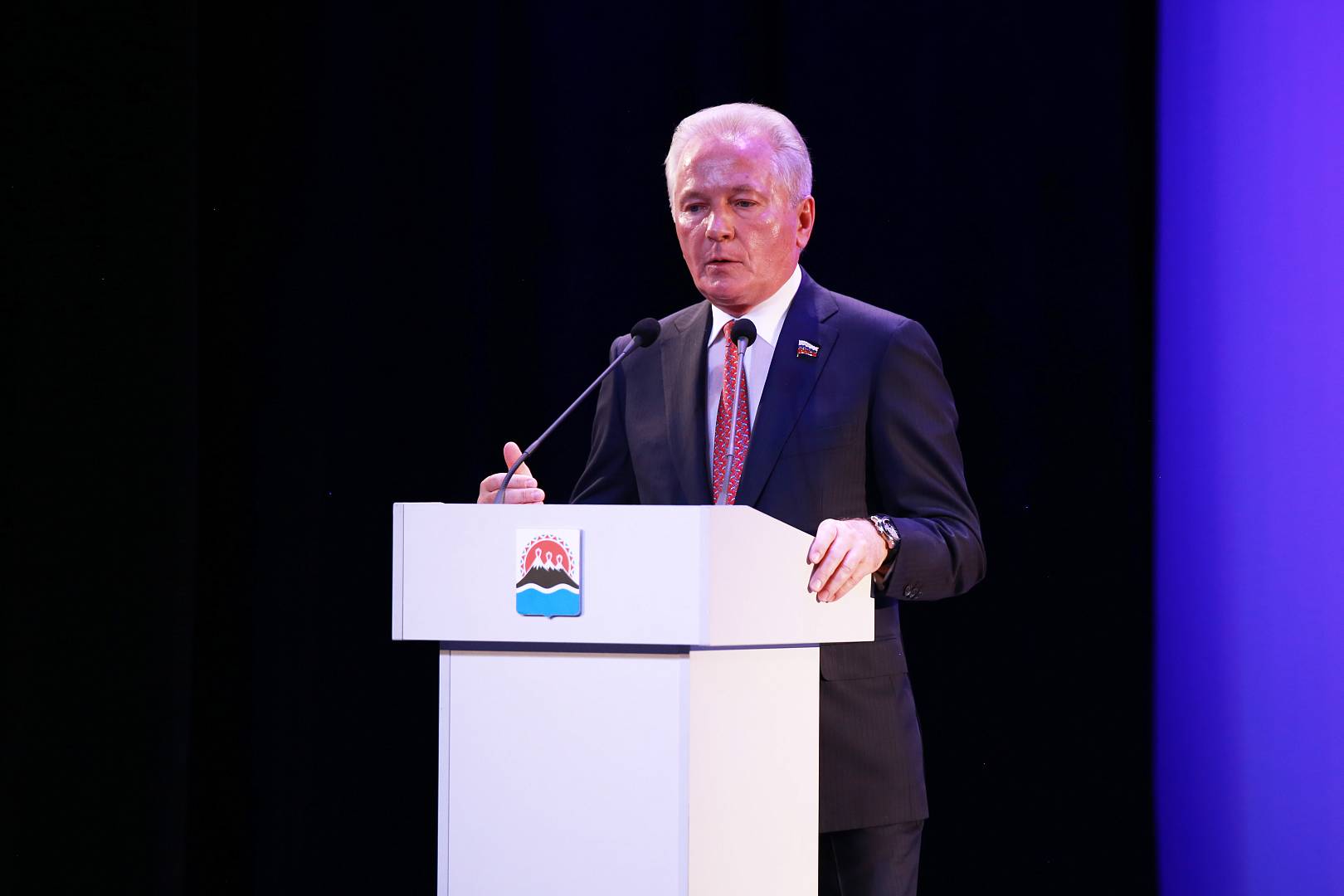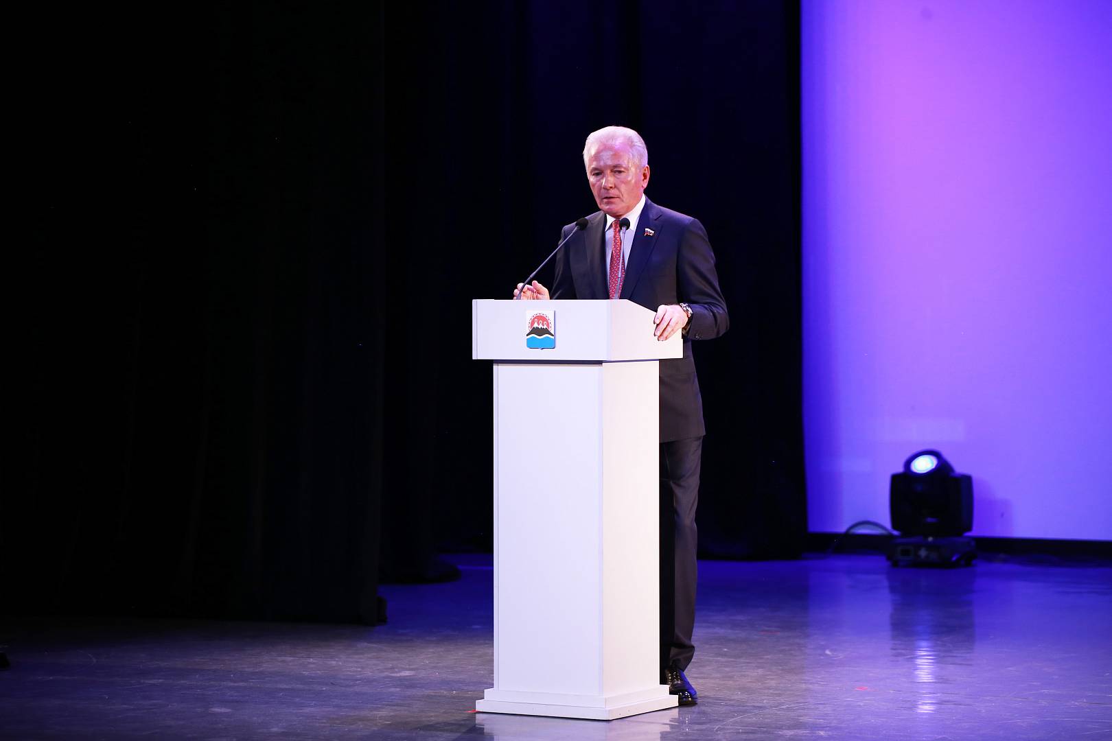 Валерий Пономарев зачитал поздравительный адрес, направленный в адрес камчатского парламента председателем Совета Федерации Валентиной Матвиенко.