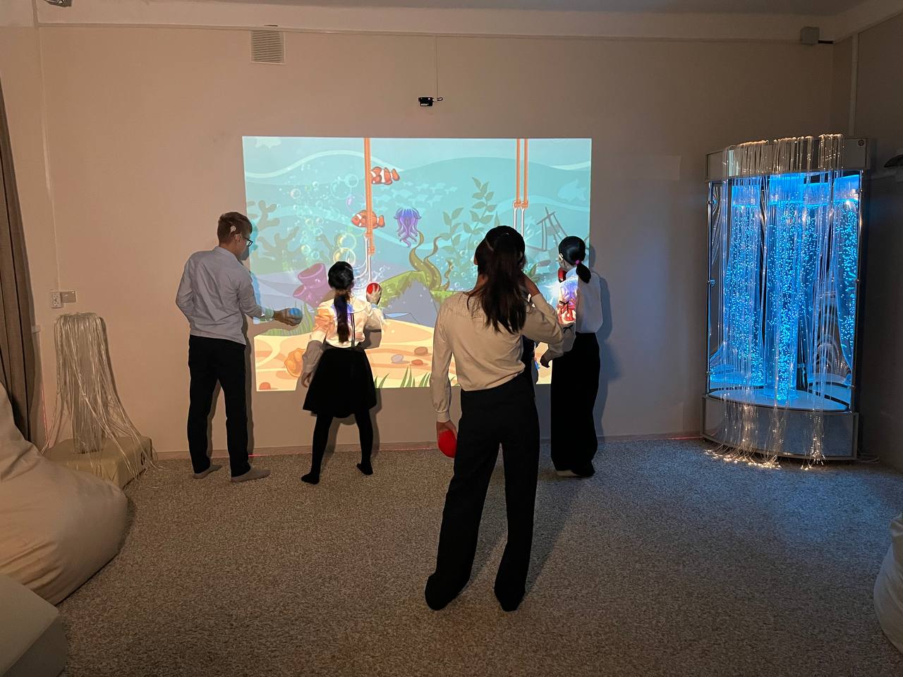 «В этом году в школе-интернат, расположенной на пр. 50 лет Октября, был сделан капитальный ремонт. Также и мы оказали учреждению, расположенному в 5 избирательном округе, депутатскую помощь. Благодаря спонсорской поддержке генерального директора Тымлатского рыбокомбината Александра Литвиненко и волонтера Николая Ян в рамках проекта: «Интерактивное оборудование в социальные учреждения», здесь появилась интерактивная стена. Для ребят с ограниченными возможностями здоровья – это возможность динамично, интересно заниматься. Изучать математику, разные предметы, знакомиться с окружающим миром», - рассказал Владимир Агеев.