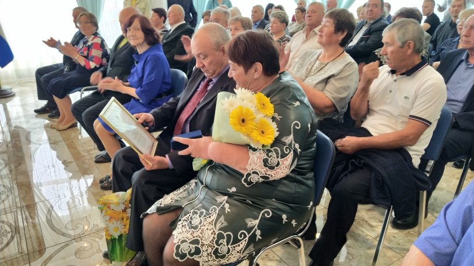 Музыкальный подарок всем присутствующим сделал заслуженный артист Российской Федерации Валерий Трофимович Кравченко, который вместе с супругой Анной Дмитриевной был в числе награжденных медалью «За любовь и верность». Семья Кравченко отмечает в этом году золотую свадьбу.