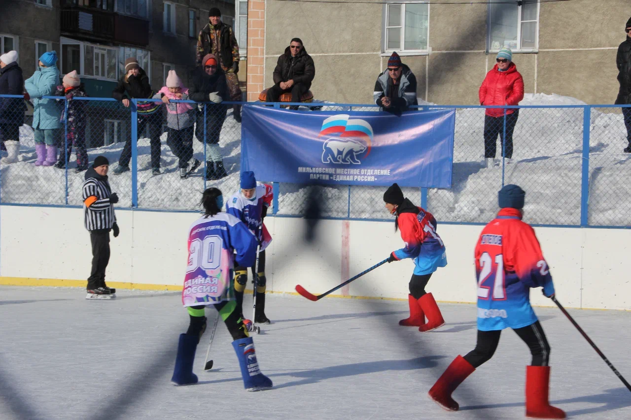 1 марта, в День рождения регионального отделения партии «Единая Россия», в Мильково прошел традиционный открытый женский турнир по хоккею в валенках.